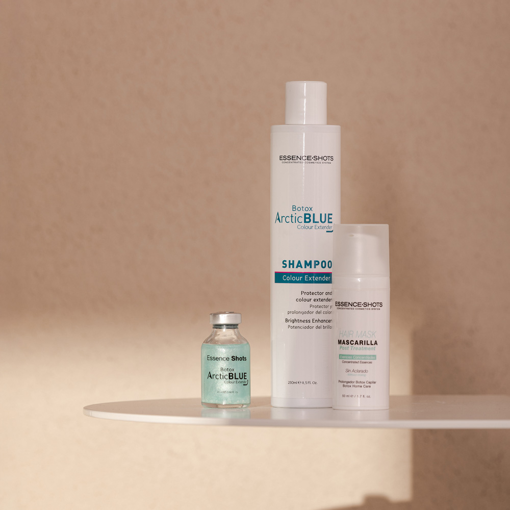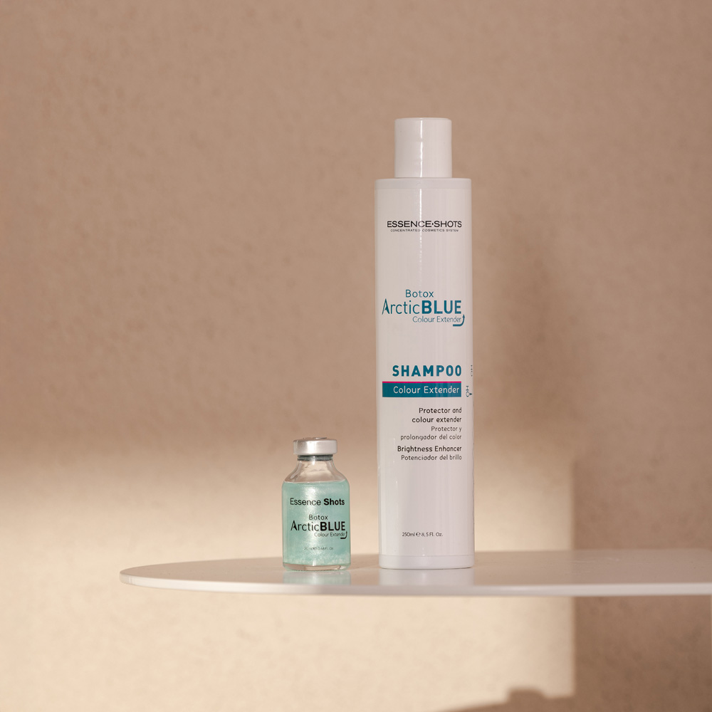 Essence Shots Arctic Blue tai pažangi plaukų priežiūros linija, sukurta dažytų, šviesintų ir pažeistų plaukų spalvos išsaugojimui bei intensyviam atstatymui. Šios linijos produktai padeda neutralizuoti nepageidaujamus atspalvius, išryškina norimą plaukų toną ir suteikia plaukams sveiko žvilgesio.