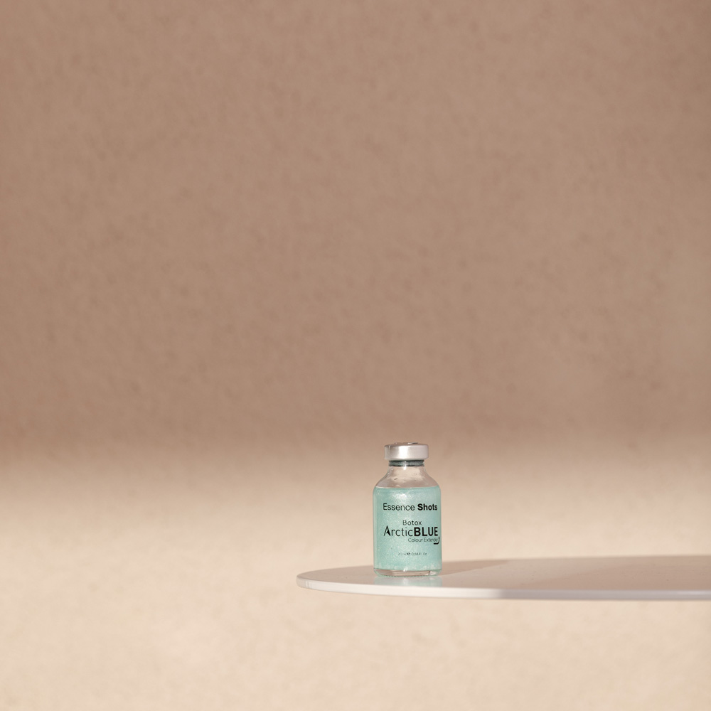 Essence Shots Arctic Blue koncentratas: koncentruota priemonė, kuri veikia plauko gilesnius sluoksnius, uždaro kutikulės žvynelius ir padeda ilgiau išlaikyti norimą plaukų toną, suteikdama švelnumo ir spindesio.